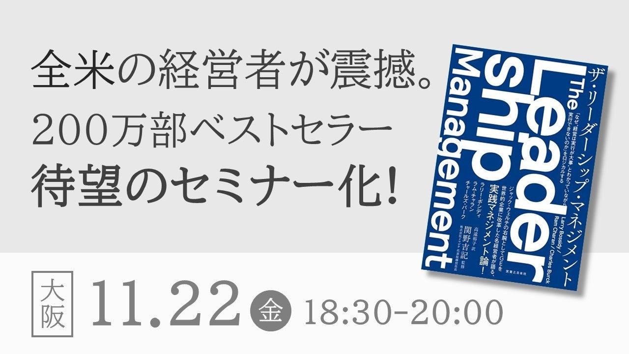 全米の経営者を震撼させた一冊、待望のセミナー化。『ザ・リーダーシップ・マネジメント』出版を記念し、大阪にて講演会を開催|11月22日(金)