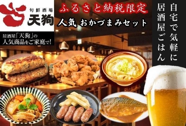 首都圏で人気の居酒屋「天狗」のふるさと納税限定セット10種がふるさと納税に初登場。