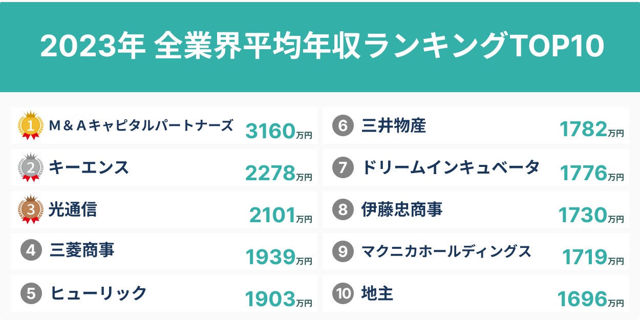 3位は光通信、2位はキーエンス。1位はまたもやあの企業!2023年全業界平均年収ランキングTOP10を発表!/SalesNow DBレポート