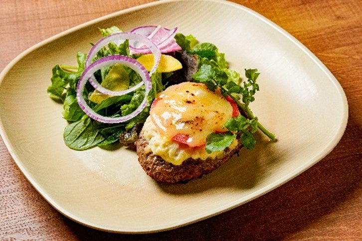 旨味が凝縮された赤身牛肉を感じていただくよう、つなぎに使う食材は最小限に抑え、脂控えめのしっかりした肉肉しいハンバーグに仕上げました。