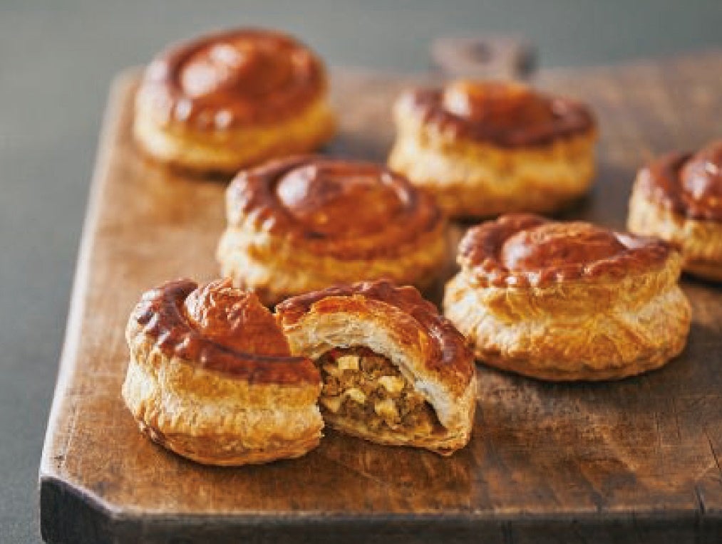 1923年、神戸1号店オープン当時から愛されるミートパイ。老舗の牛肉専門店「大井肉店」の神戸牛ミンチを玉ねぎやゆで卵と合わせて仕上げました。サクサクのパイ生地と神戸牛の旨味を堪能できる一品です。