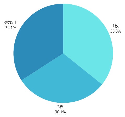クレジットカードの保有枚数は1枚が35.8%で最も多かったが、3枚以上持っている人も34.1%いた。