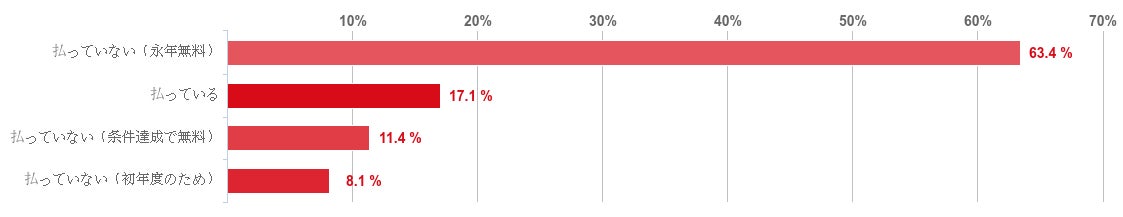 年会費が永年無料のクレジットカードを使っている学生が63.4%で最も多かったが、「払っている」との回答も17.1%で一定数いた。