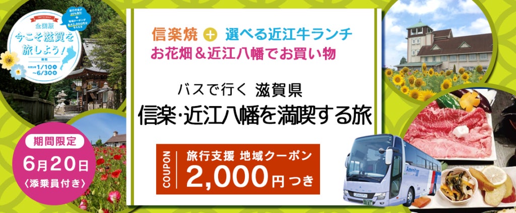 旅行代金20%割引!+滋賀県地域クーポン付2,000円付き