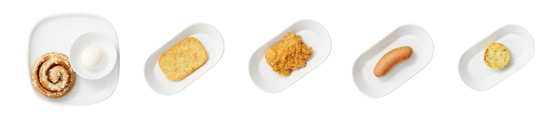 ※サイドメニューはハッシュドポテト、フライドチキン、プレーンソーセージ、ベジタブルメダリオンです。