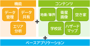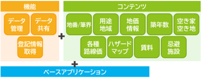 基本機能だけでなく、不動産・金融・自治体など業界ごとの業務課題を解決するための機能部品をラインナップ。ゼンリンがこれまで提供した過去のソリューション事例から得たノウハウを汎用化し、即座に利用できる仕組みを実現しました。