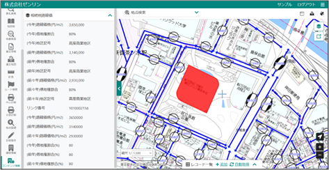 路線価・用途地域をはじめ不動産検討に必要な情報がワンストップで確認可能なことに加えて、物件情報や営業情報を登録して地図上で可視化。ゼンリン独自の建物情報・空き家・空き地・駐車場など4000万件以上の情報を活用した物件探しも可能となり、外出先からスマートフォンでの確認や登記取得もできることで、不動産業務の物上げから用地仕入れ業務までの効率化を実現。