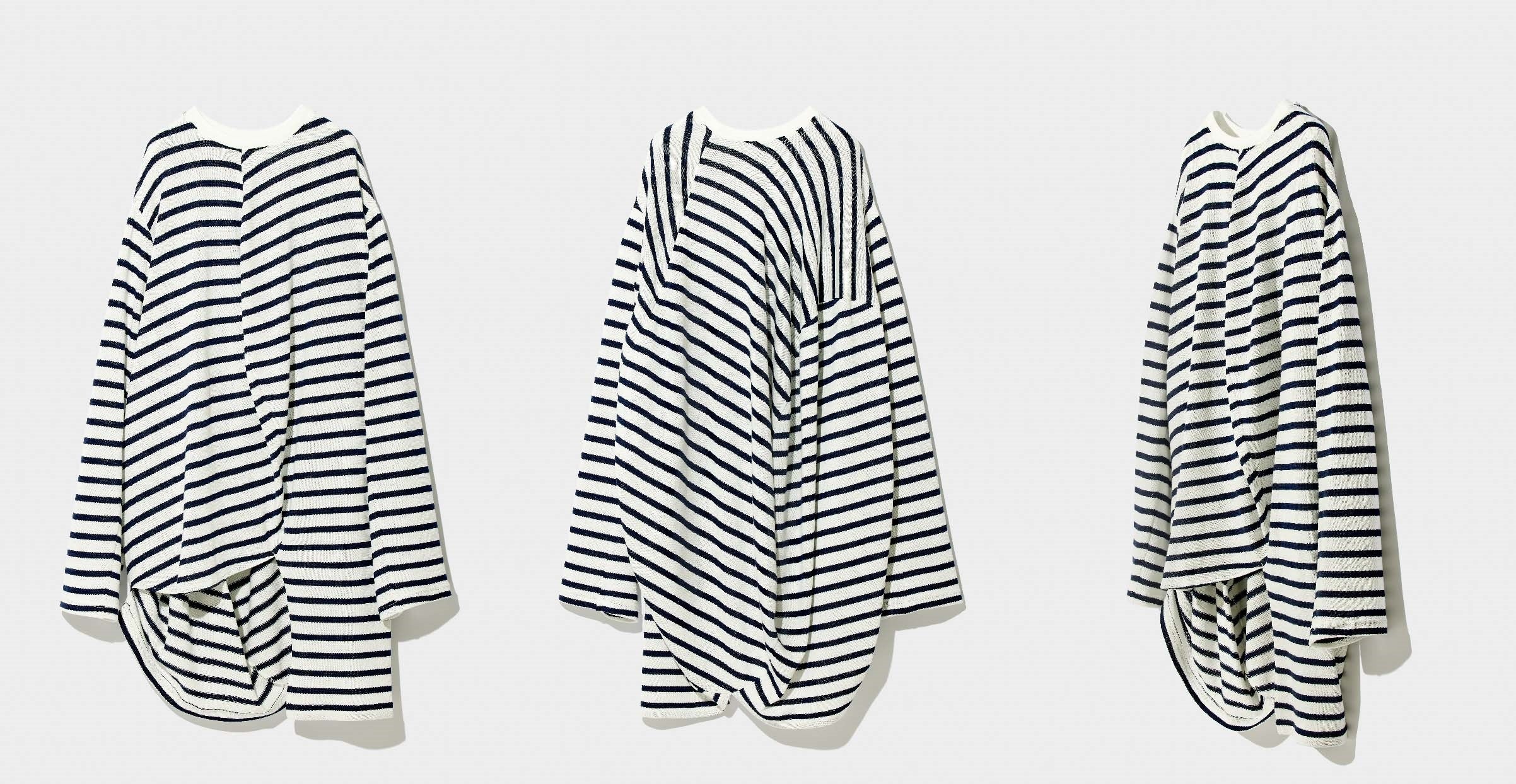 本プロジェクトでは、「男性用/女性用の区分がない球体を原型とした服は、性別やサイズを問わず、多様な体包み込める」という仮説の検証を行います。常識としてきた「体に合う服」を疑い、「体に合わない服」を徹底して考え抜き、たどり着いた球体の服。人の体と出会うことで、球体の服は、ゆったりと弧を描く前立てにたぐられるようにできた陰影や、 球体のふくらみにより生じる後ろ身頃や脇身頃のドレープを生み出します。誰にも合わない服は、誰もが着られる服。検証結果をご覧ください。