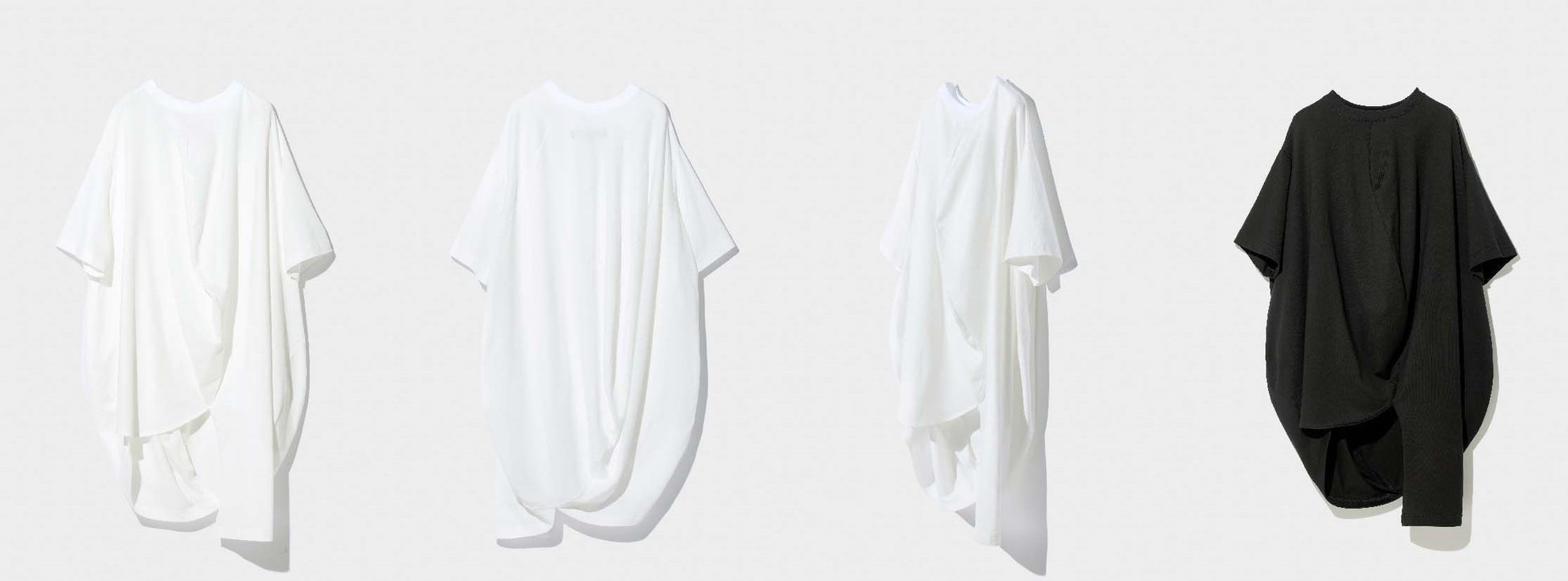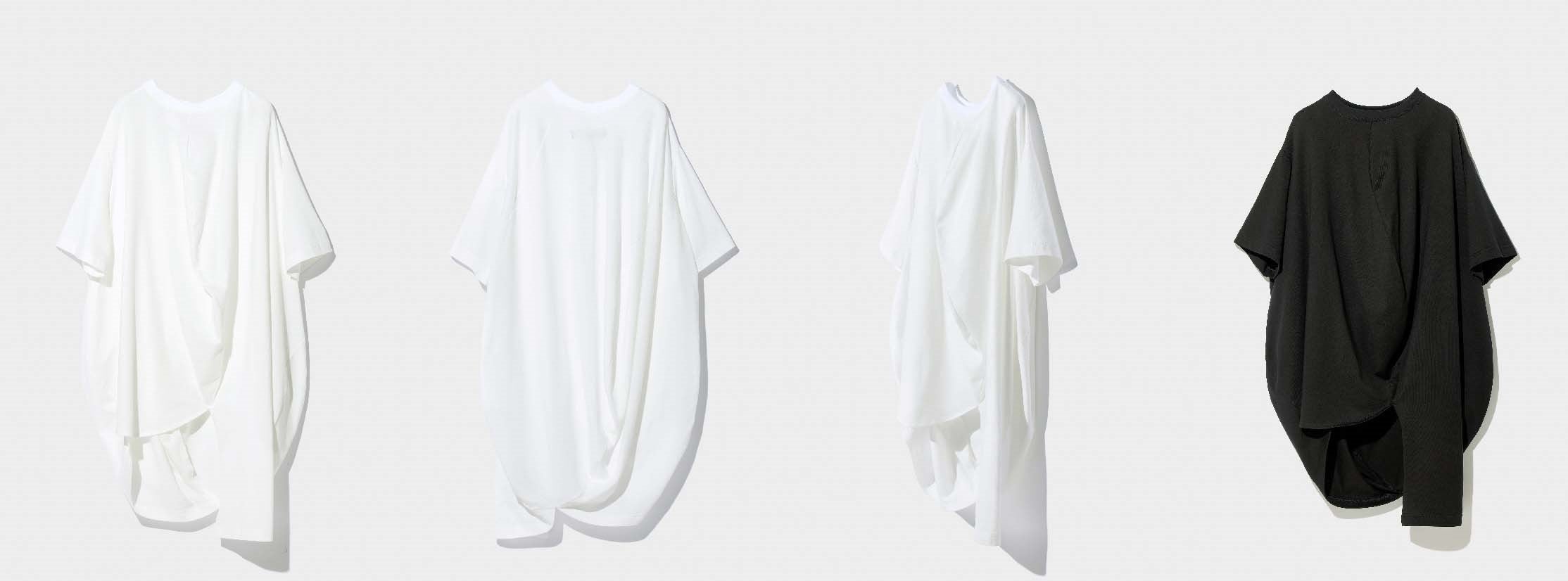アンリアレイジ定番のボールモチーフでTシャツをデザイン。身体に沿うことで、自然なドレープとボリュームのあるシルエットに変換される存在感のある一枚。※左から ホワイト:フロント、バック、サイド、ブラック:フロント