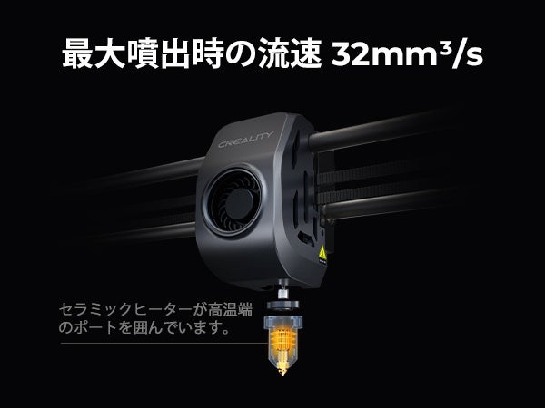 40秒で200℃まで加熱し、フィラメントを瞬時に溶かすことができる、ホットエンド全体を包むアップグレードセラミックヒーターを搭載しています。チタン合金ヒートブレイクホットエンドと銅合金ノズルのデュアルギアダイレクトエクストルーダーは、300℃の高温プリントに対応します。