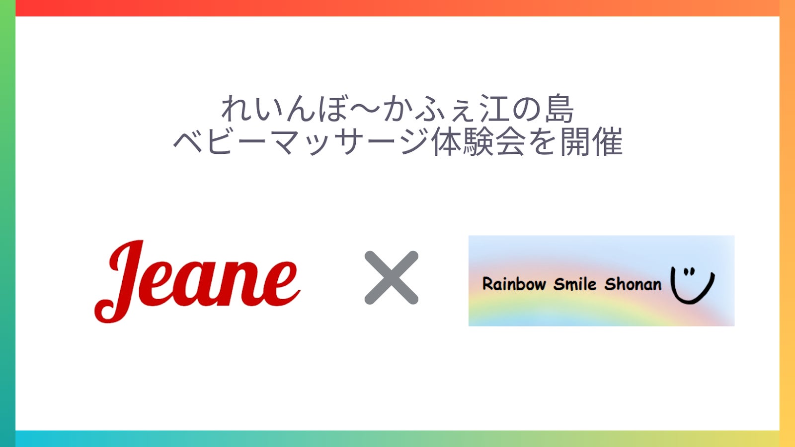 株式会社ジーン(本社:東京、代表取締役社長:林田洋明、以下当社)が協業する「れいんぼ〜かふぇ江の島(代表:鈴木理恵)」は、湘南人不動産湘南支店において、子育てに役立つイベントを随時開催。10月は、ベビーマッサージの体験会を行います。