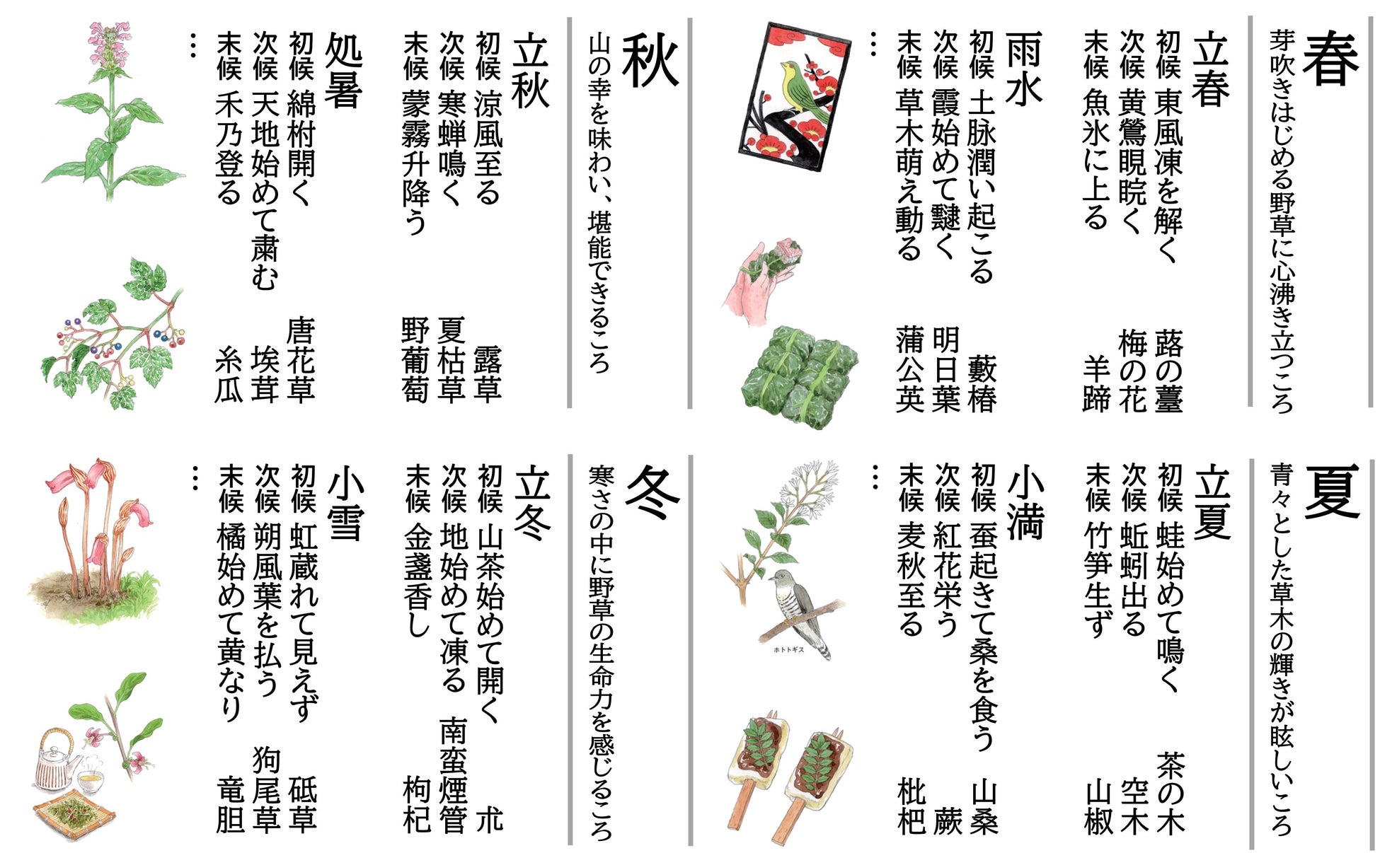 巻末には「七十二候を楽しむ野草の基礎知識」を掲載しています。