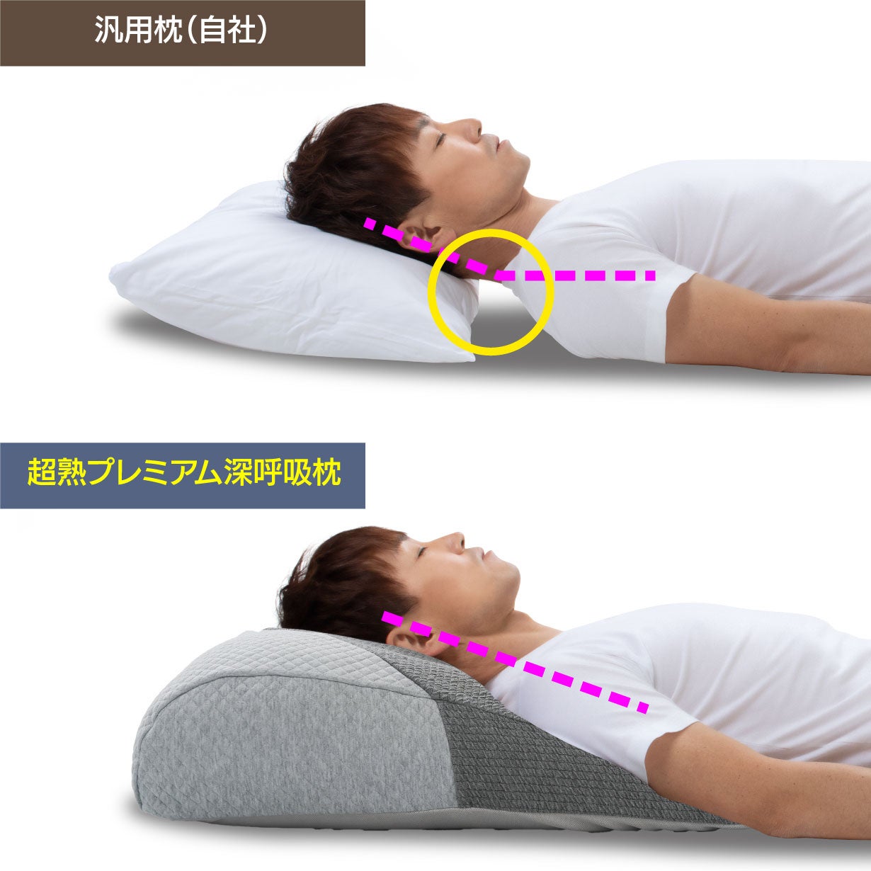そんなお困りを抱える方々の為に、超熟シリーズに新たな枕が進化して登場!その名も「超熟プレミアム深呼吸枕」です!