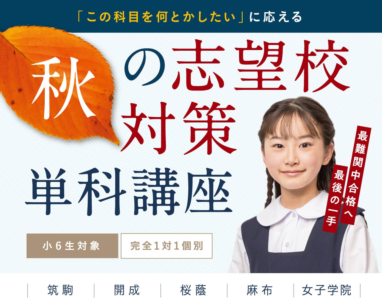 ☆最難関入試に精通したプロ講師が1対1で徹底対策。“この科目を何とかしたい”に応えます。★
