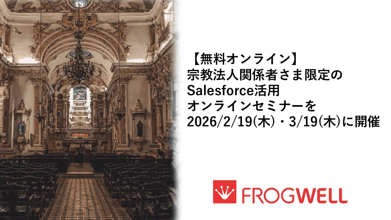 フロッグウェル株式会社は、宗教法人向けSalesforce活用オンラインセミナーを2026/2/19(木)・3/19(木)に開催いたします。