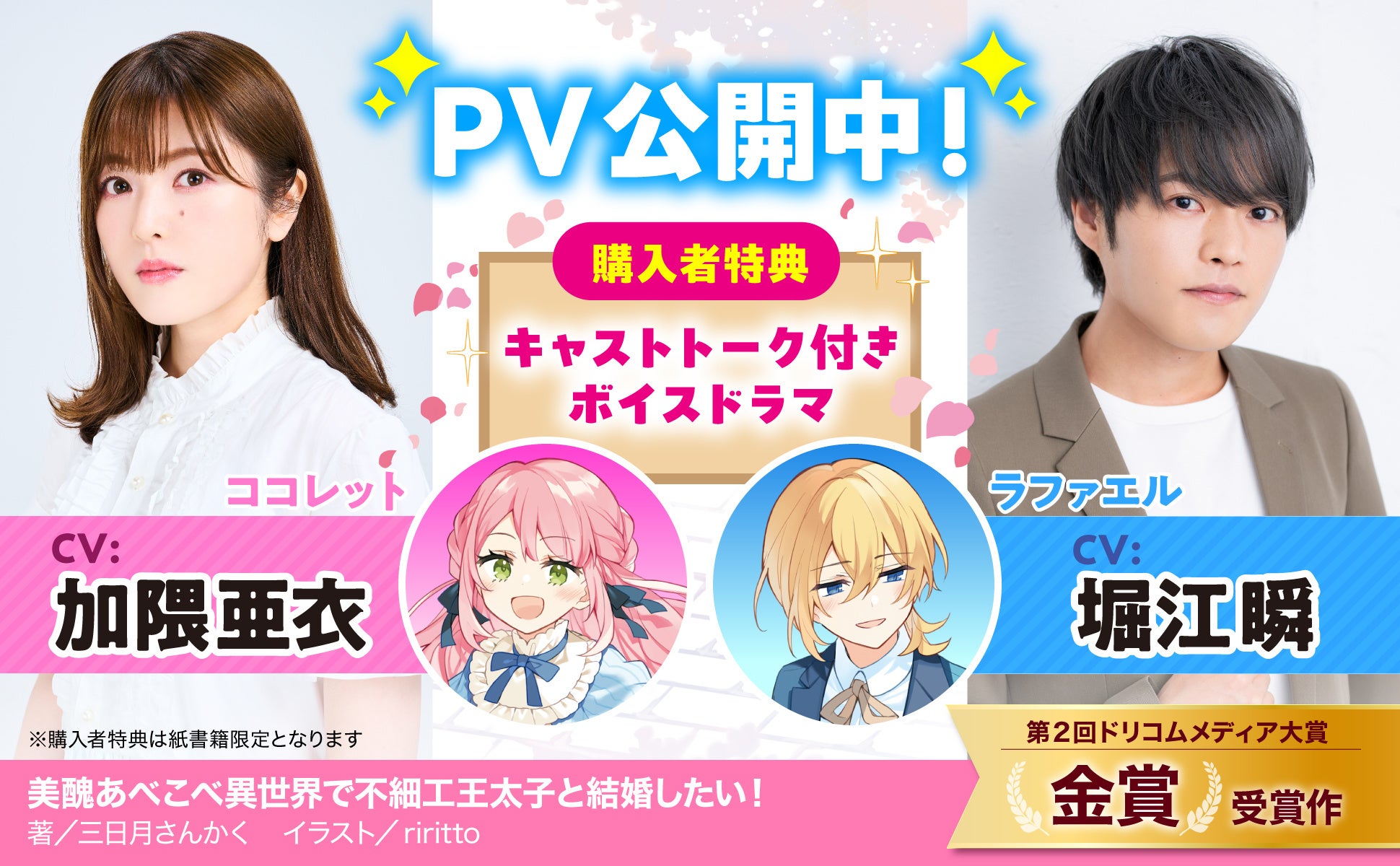 加隈亜衣&堀江瞬によるPVを公開!ドリコムメディア大賞《金賞》受賞作『美醜あべこべ異世界で不細工王太子と結婚したい!』10月10日(木)発売