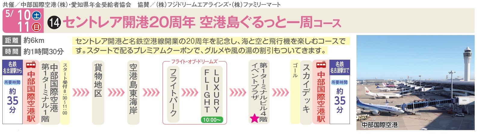 このほか、5月10日、11日には中部国際空港島を一周する名鉄のハイキングも開催します。この機会にぜひ名鉄電車で中部国際空港へお出掛けください。