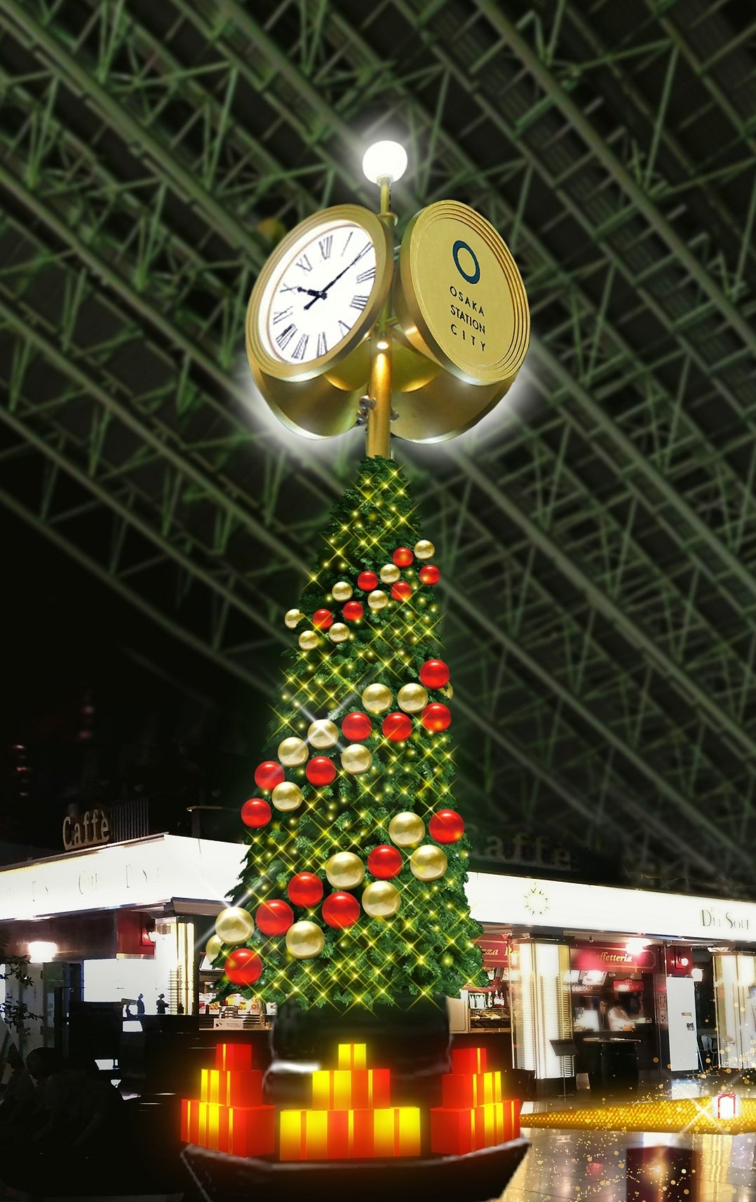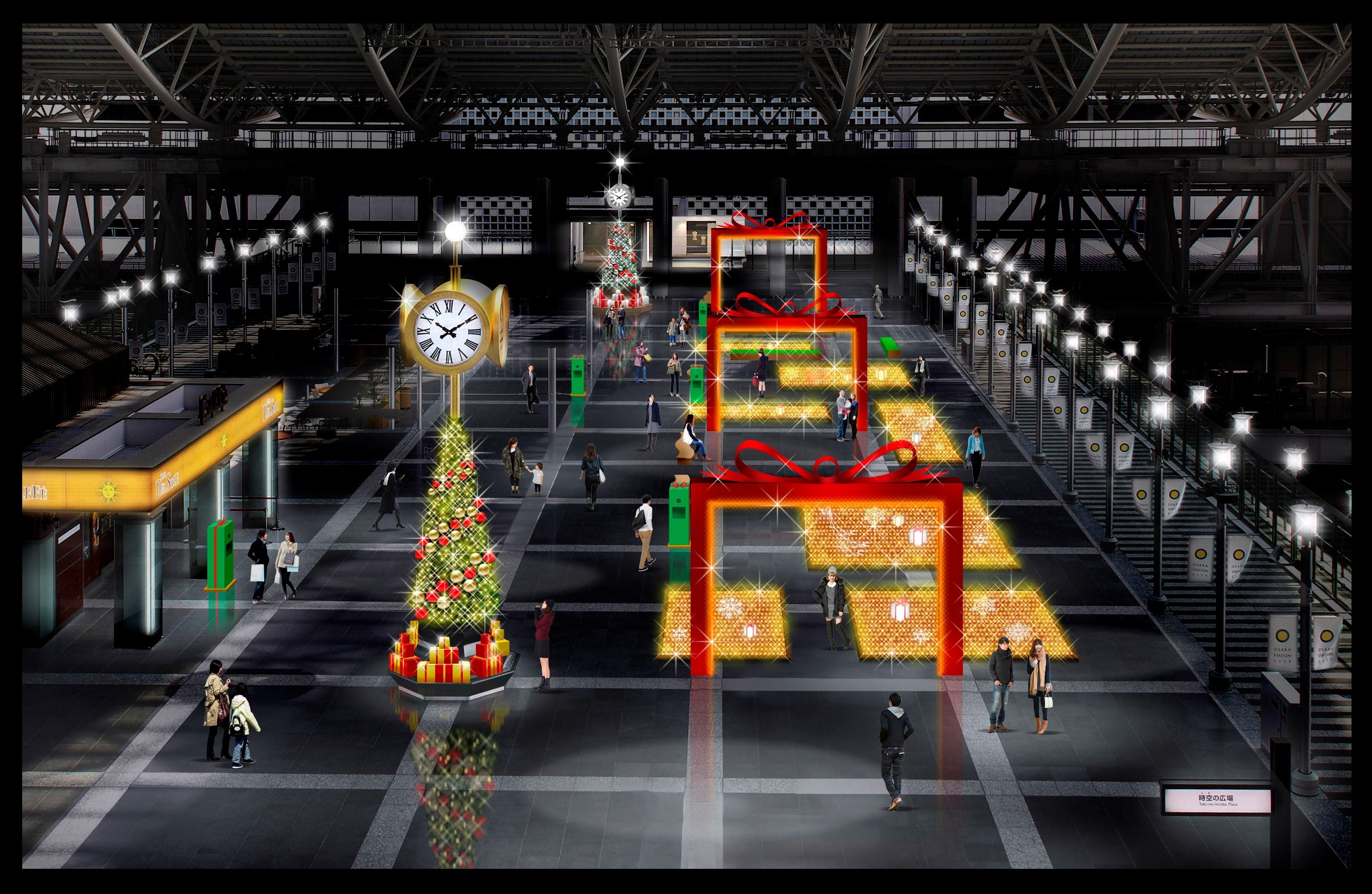 3年ぶりに大阪ステーションシティに光り輝くイルミネーションが帰ってきます。クリスマスツリーやプレゼントBOXをイメージしたゲートなど新たな装飾と共に、各広場をゴールド基調の LED約5万3000球で華やかに彩ります。