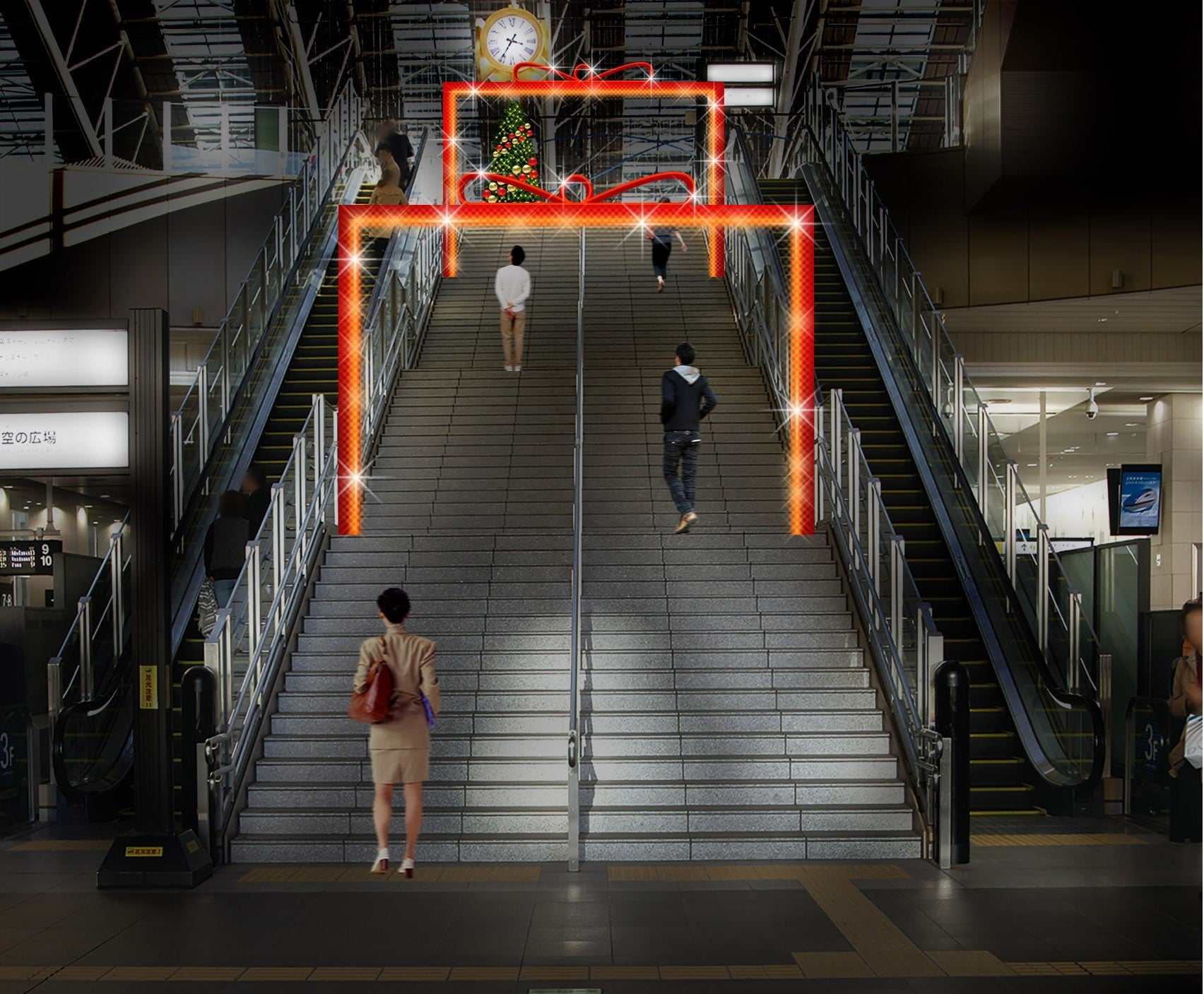 時空(とき)の広場と、広場へとつながる大階段にプレゼントBOX ゲートが登