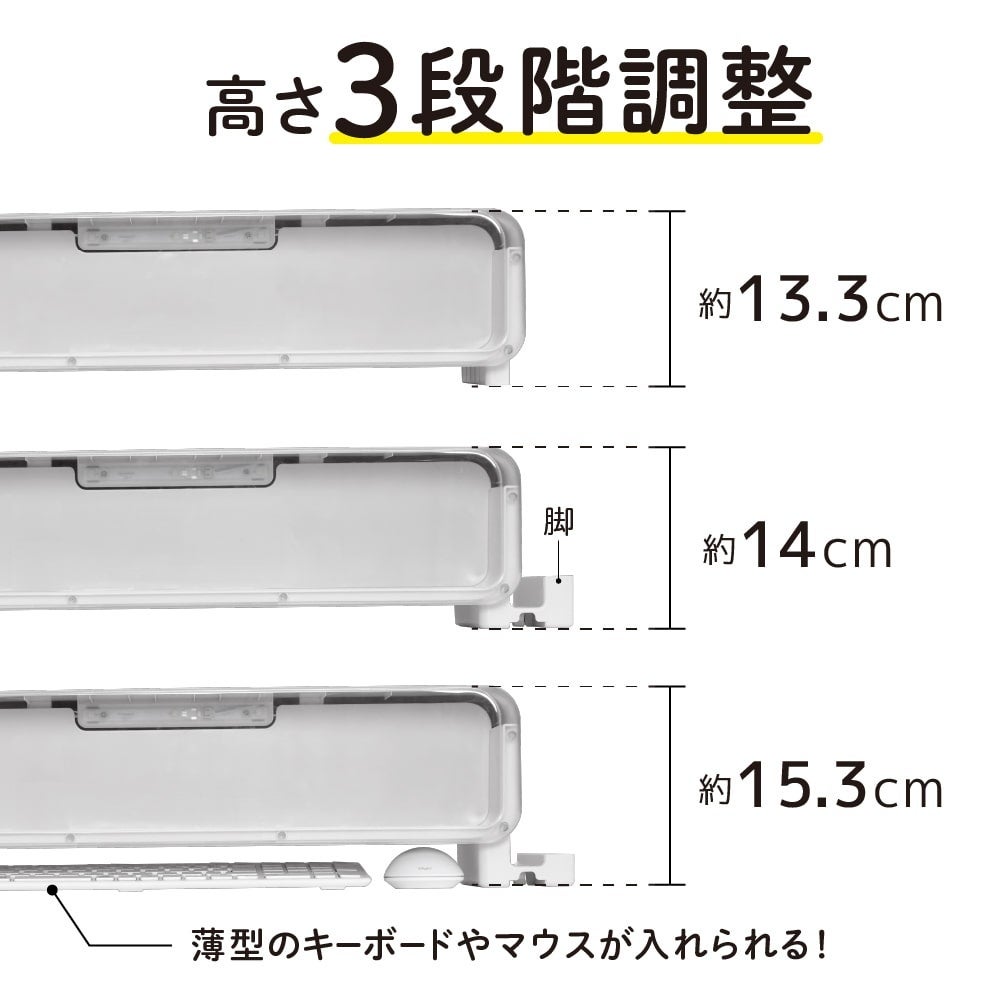目線が最大15.3cm上げられて、スタンドの下部には薄型のキーボードやマウスを収納することもできます。