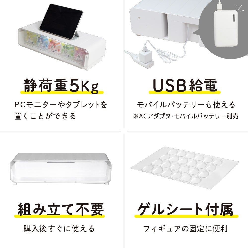 好きなフィギュアや推しのグッズ等を飾り、LEDライトで照らすことが可能。