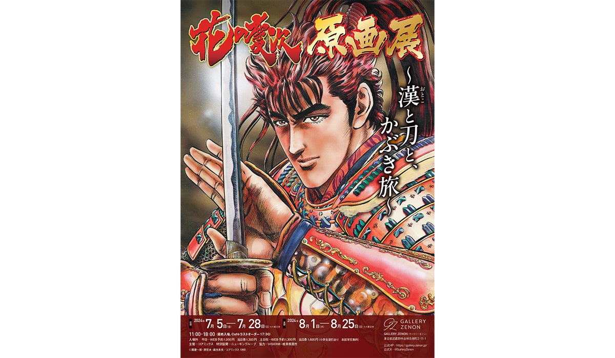 漫画をテーマとしたアートギャラリー「GALLERY ZENON(ギャラリーゼノン)」にて、大人気戦国漫画「花の慶次 ―雲のかなたに―」(原作/隆慶一郎 漫画/原哲夫 脚本/麻生未央) の原画展「花の慶次 原画展 〜漢と刀と、かぶき旅〜」が2024年7月5日(金)より開催されている。