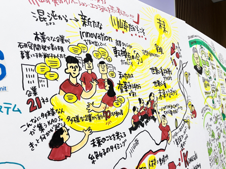 ▼当日の様子をグラフィックレコーディングによりビジュアル化