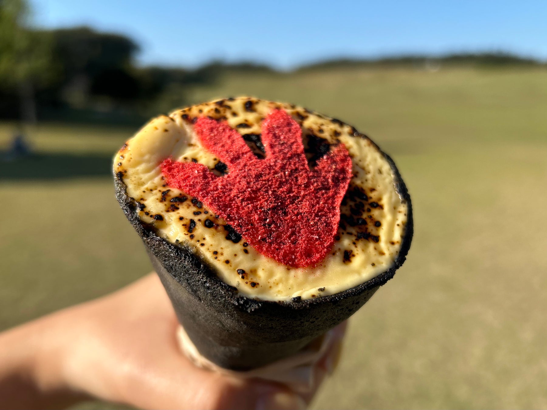 ニジゲンノモリ「ゴジラ迎撃作戦」キッチンカー冬のあまーいゴジラコラボフード『ゴジラ足跡付き アイスブリュレクレープ』
