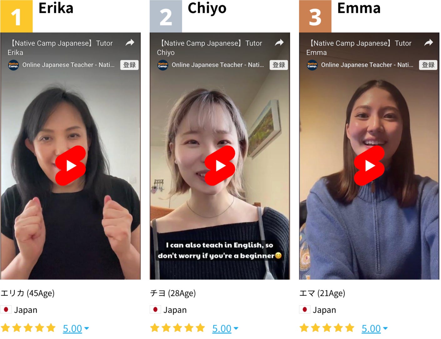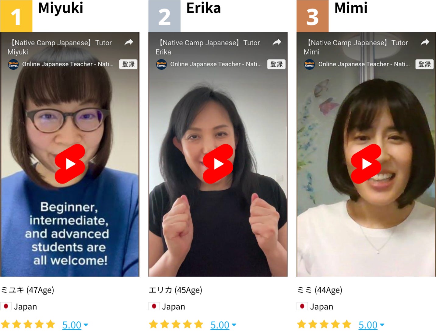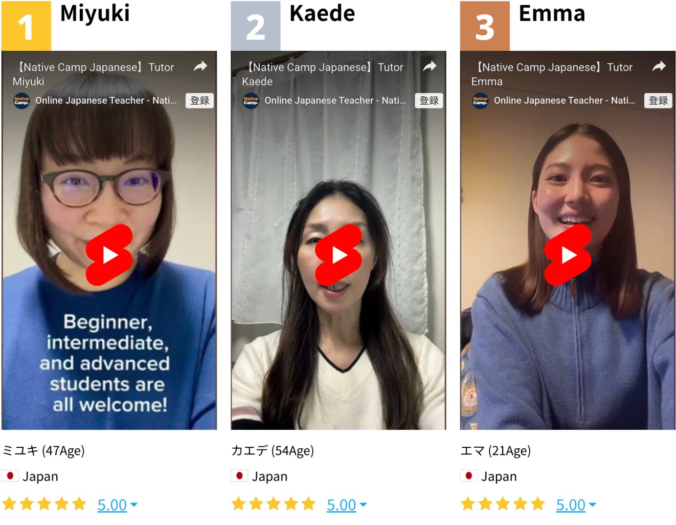 在 Native Camp Japanese,我們擁有各種背景與專業能力的講師,能依照每位學習者的需求提供最合適的教學服務: