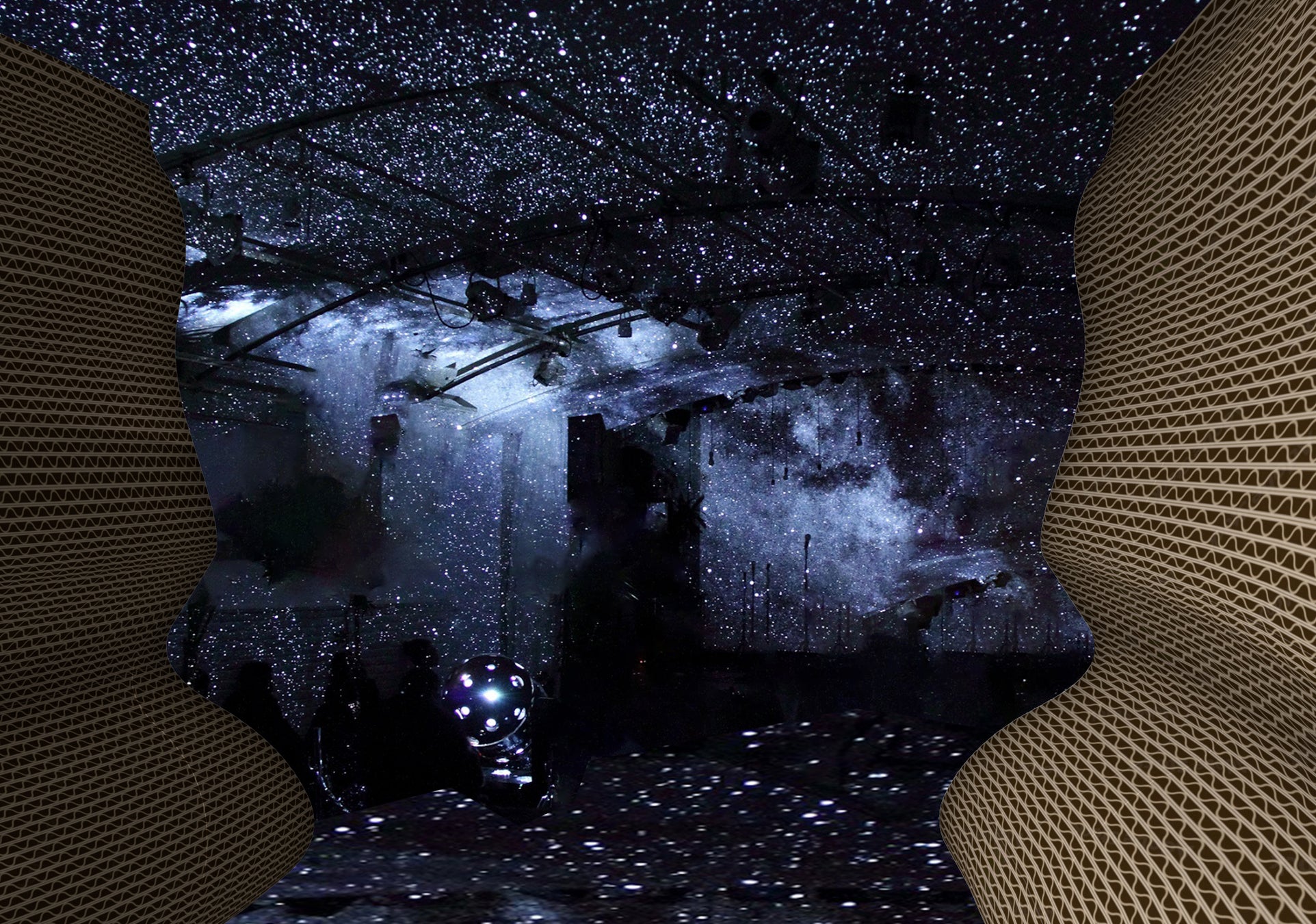 そのような思いからスタートするプロジェクト「人類にエソラゴトを」のコンセプトを体感できる場として、実験的に表現した「都市洞窟エソラゴト」を、2026年1月7日から、日比谷OKUROJI で、関係者のみの招待制にて限定公開いたします。都市洞窟エソラゴトは、常に先鋭的なプラネタリウムを生み出し続けるクリエーター大平貴之氏監修によるインスタレーションです。