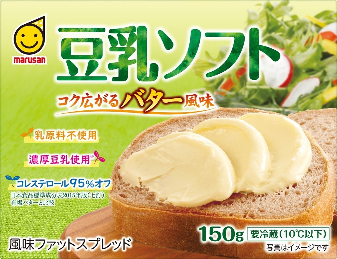 コレステロール95%オフ※、乳アレルギーの方でもお召し上がりいただける、豆乳でつくったスプレッドです。