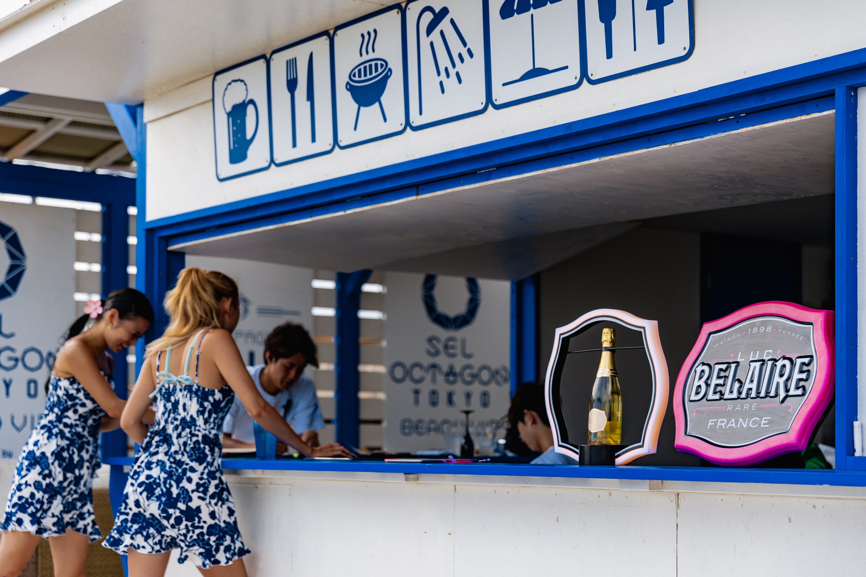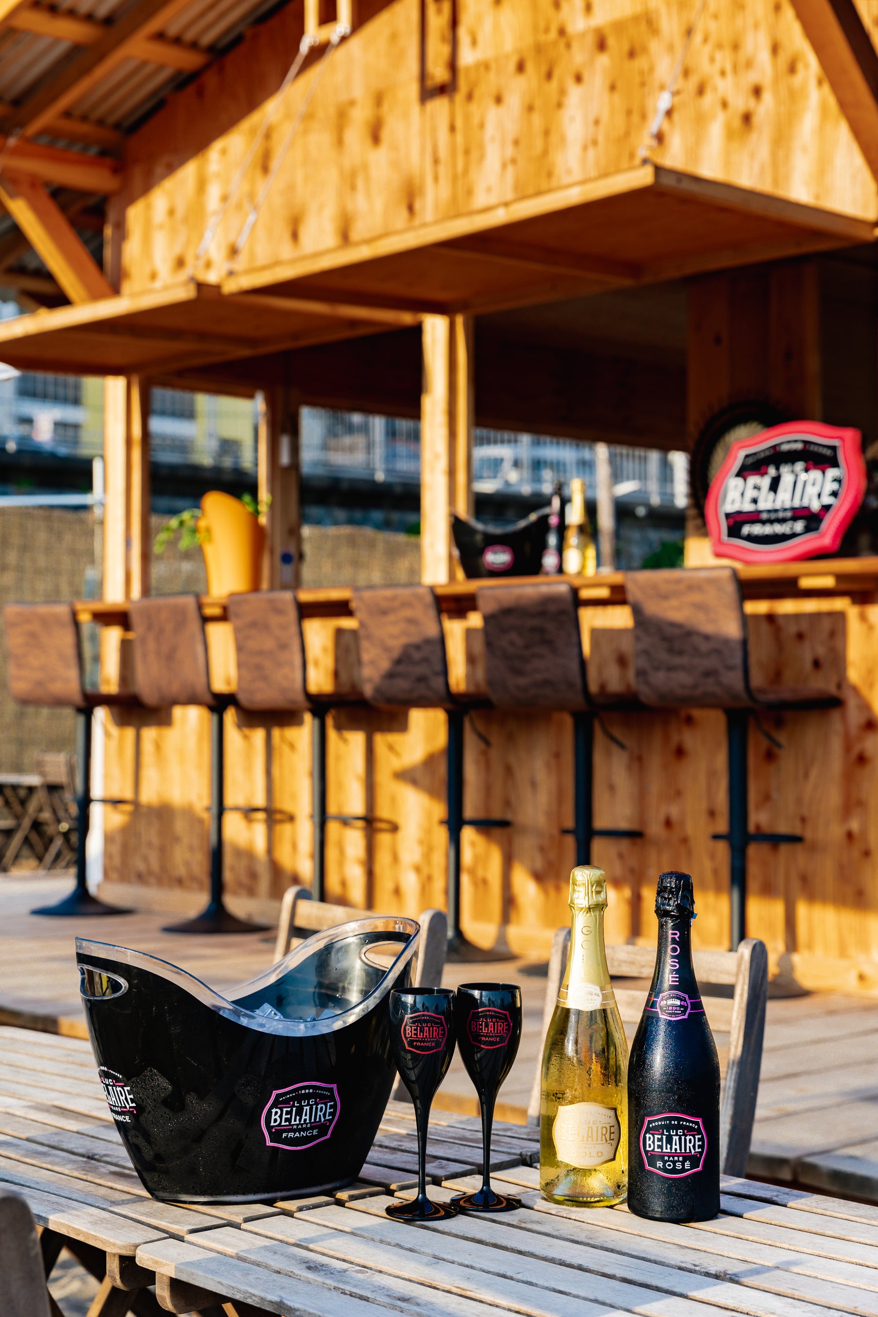 各店舗では、「リュック・ベレール レア ロゼ」「リュック・ベレール ゴールド」をボトル販売します。「avex beach paradise supported by TCB」には、「リュック・ベレール」のロゴを表現したロゼカラーのネオンが点灯する華やなフォトブースが登場。ブースで写真を撮影し、指定のハッシュタグと共にSNSへ投稿していただくと「リュック・ベレール」を1杯プレゼントします。