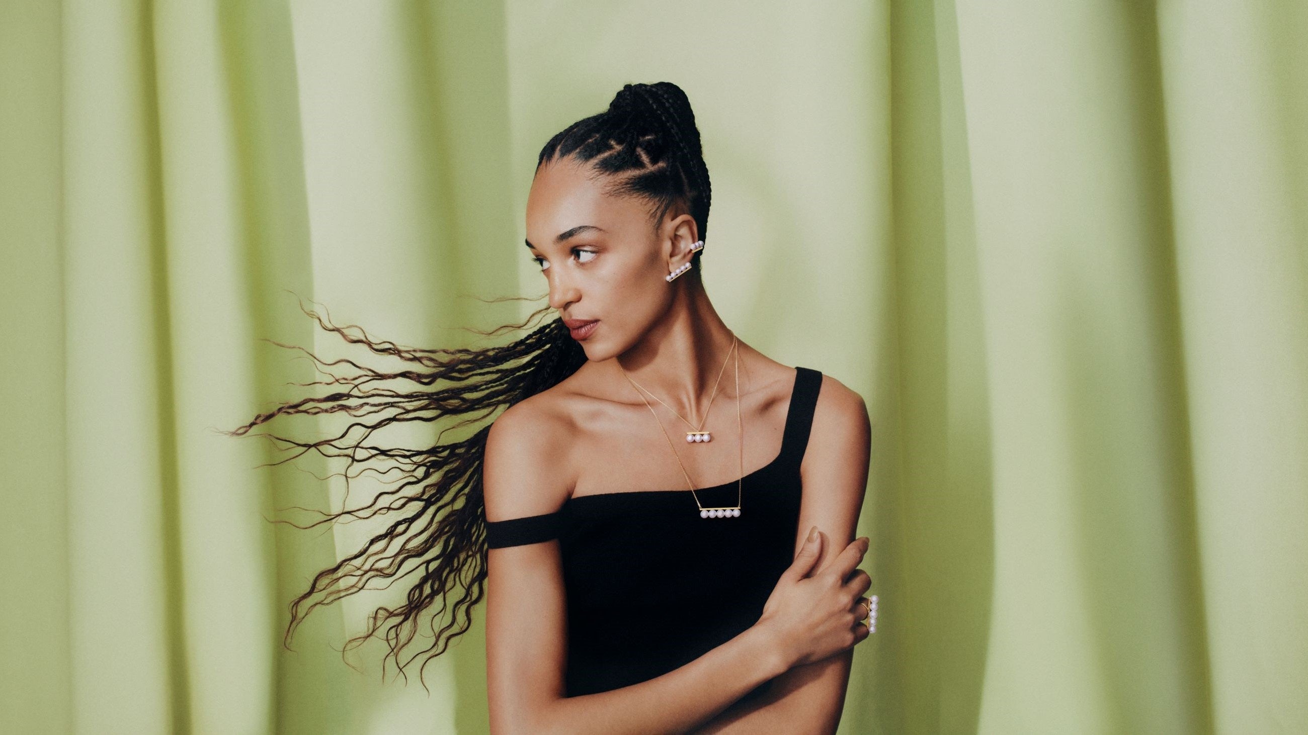 「バランス」シリーズでは、ゴールドのバーにパールを直線状に並べて調和させた、ブランドを象徴する革新的デザインのミニマルでモダンな美しさにフォーカスしています。