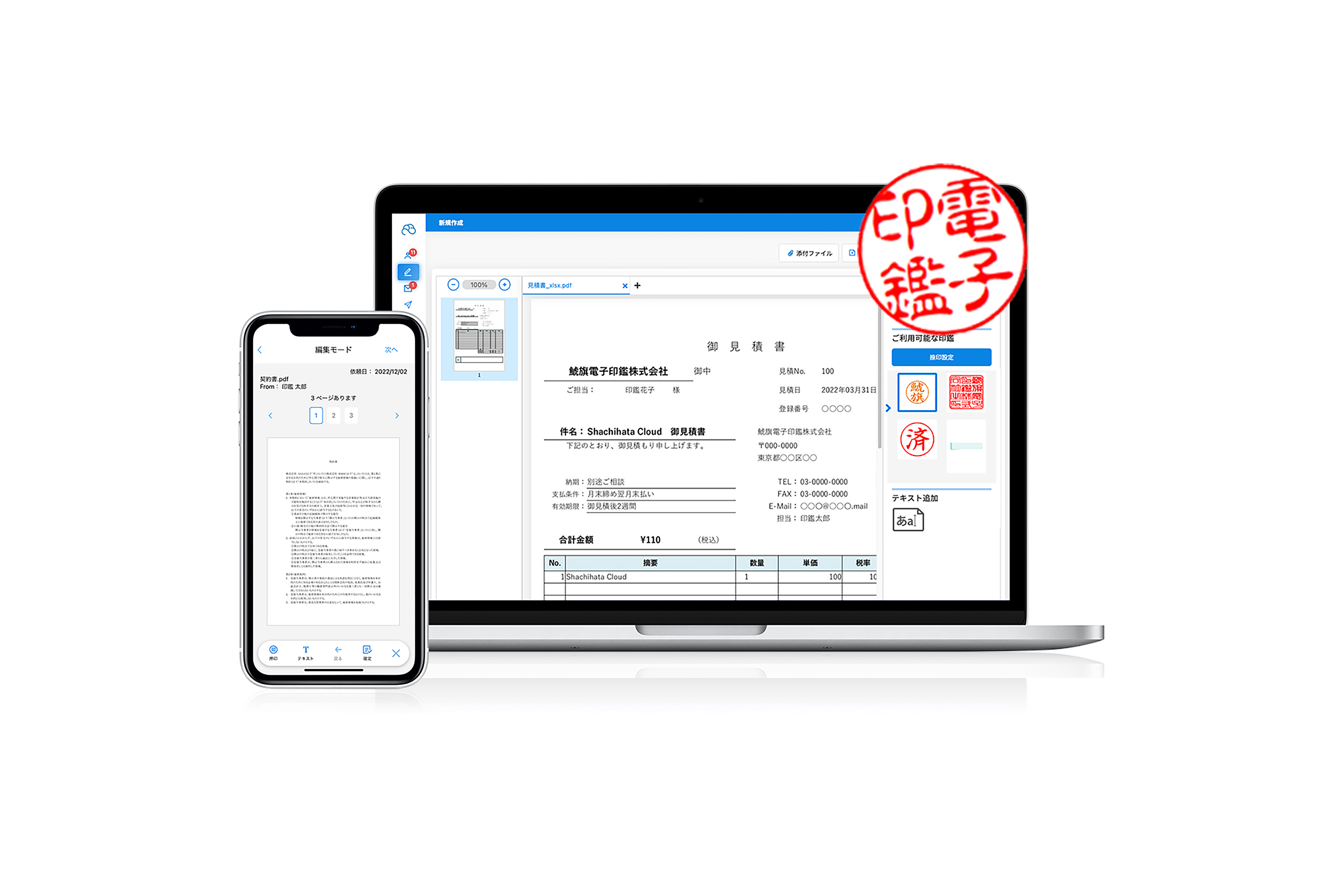 Shachihata Cloudは、リモートワーク時代のクラウド電子印鑑・電子署名サービスで、スケジューラなどグループウェア機能も付属しています。また、勤怠・経費精算などオプションを追加しサービスの拡張利用も可能です。稟議書や申請書といった社内文書から、見積書や請求書、注文/請書等の取引先との決裁文書にいたるまで様々な業務をデジタル化し、時間や場所を問わず簡単かつ安全に電子印鑑・電子署名を行うだけでなく、業務全体のDX化を促進します。また、2022年には電子取引ソフトのJIIMA認証を取得しました。シヤチハタは電子印鑑システムの市場展開を1995年より行っており、導入数は2022年12月時点で95万件を突破しています。