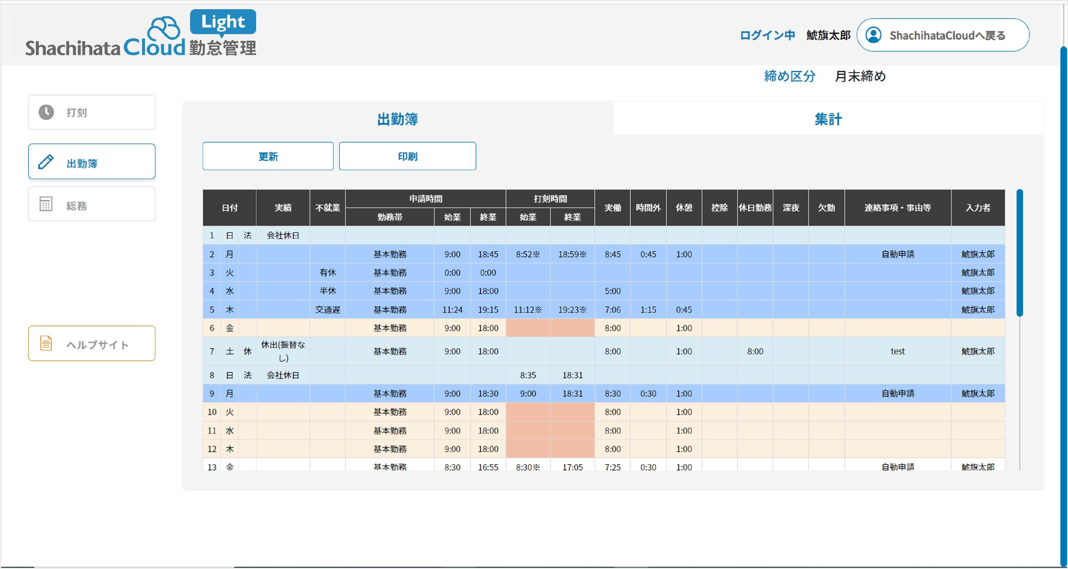 ●Shachihata Cloud勤怠管理Light 製品サイト