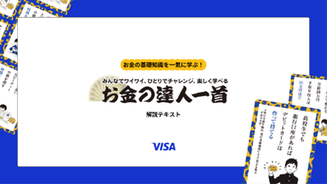 2023年11月、「マイナビ学生の窓口」が実施する、学生と企業が共創してアイディアを形にするプロジェクト「キョーソウPROJECT」によって、「高校生が本当に受けたい金融教育」というテーマのもと、楽しみながら高校生に必要なお金の管理に関する知識が身につき、Visaデビットについて理解ができるコンテンツのアイデアを創出していきました。大学生のアイデアをもとに、Visaと「マイナビ学生の窓口」が共同開発したカードゲーム「お金の達人一首」をはじめ、開発した各金融教育コンテンツは、日常生活に密接に関わる金融知識を習得し、計画的なお金の使い方や管理の重要性を学ぶことができます。また、マイナビニュース特設サイト他ウェブやSNS上で公開されており、学生たちが自主的に情報に触れたり、友達や家族などに共有することでお金について話すきっかけにもなることを目指しています。