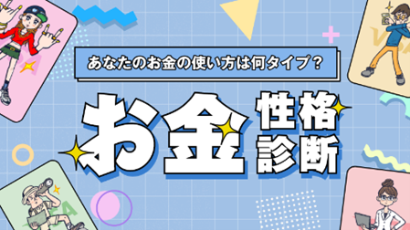 自分の好みや支払い方法などについての15個の設問に答えることで、性格タイプを分類する診断ツール。二択の質問に直感的に答えていくことで、日々の生活の中では意識していなかった自分自身の価値観やお金の使い方に関する傾向が浮き彫りになり、「江戸っ子型」や「コレクター型」、「常識人型」など8種類のタイプに診断される仕組み。