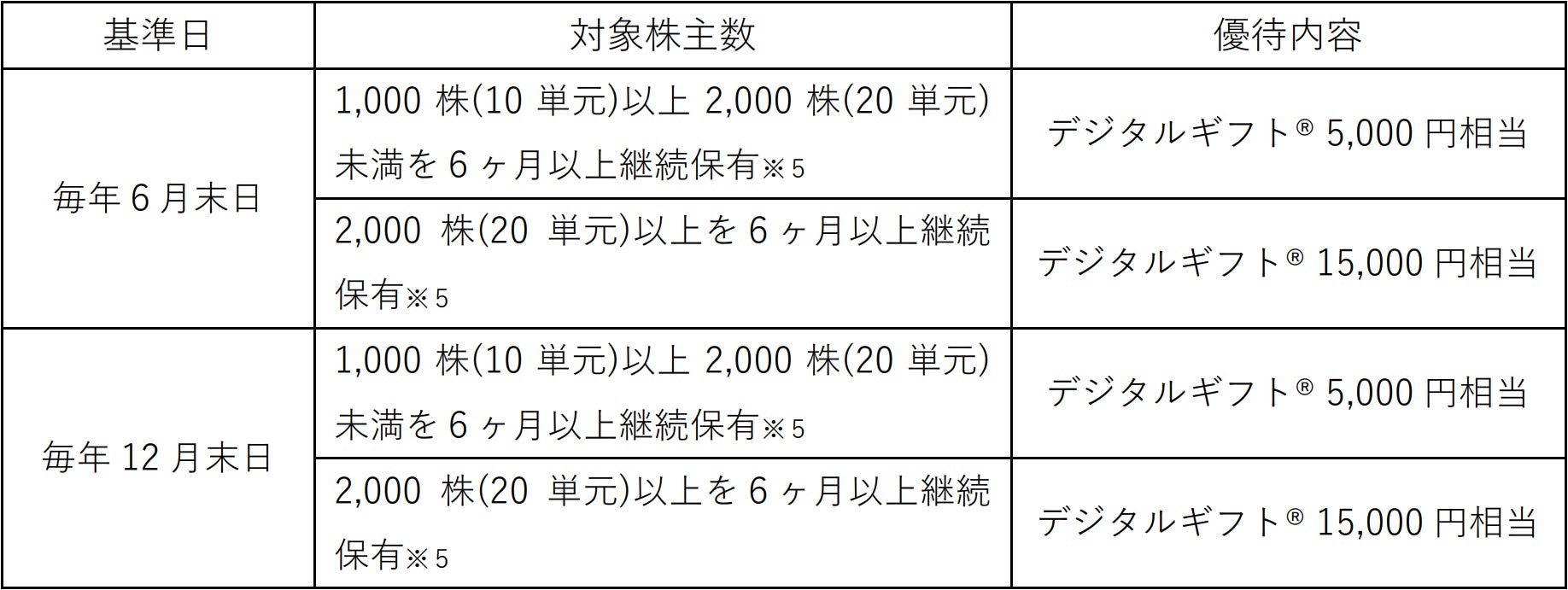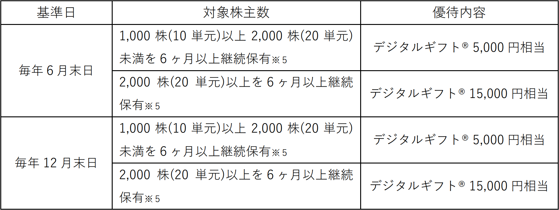 ※5:基準日(毎年6月末日及び12月末日)の株主名簿に、同一株主番号で2回以上連続して記載又は記録されることをいいます