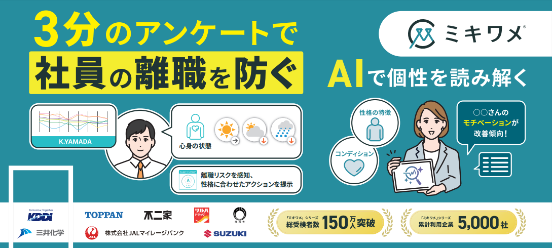-社員のメンタル状態を可視化し、性格をもとにアドバイスをすることでウェルビーイングを実現「ミキワメ ウェルビーイングサーベイ」