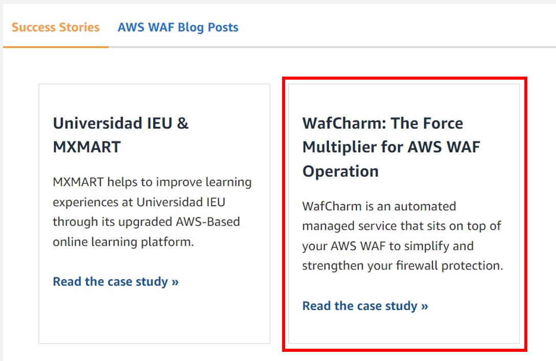この度、グローバル展開を更に強化する施策の第2弾として、AWSの協力の下、AWS WAF パートナーサイトに日本初・世界でも2社目の事例として『WafCharm』が紹介されました。