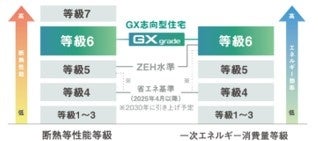 (※)「GX志向型住宅」である戸建住宅の要件は、①断熱等性能等級6以上、②再生可能エネルギーを除く一次エネルギー消費量削減率35%以上、③再生可能エネルギーを含む一次エネルギー消費量削減率100%、④高度エネルギーマネジメントの導入、の4つを満たすことが必要とされています。