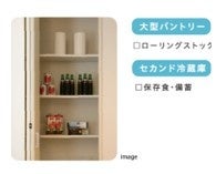 大型パントリーやセカンド冷蔵庫は、キッチンのすぐそばに設置。多めに食材をストックすることや、保存食をしまうことができます。
