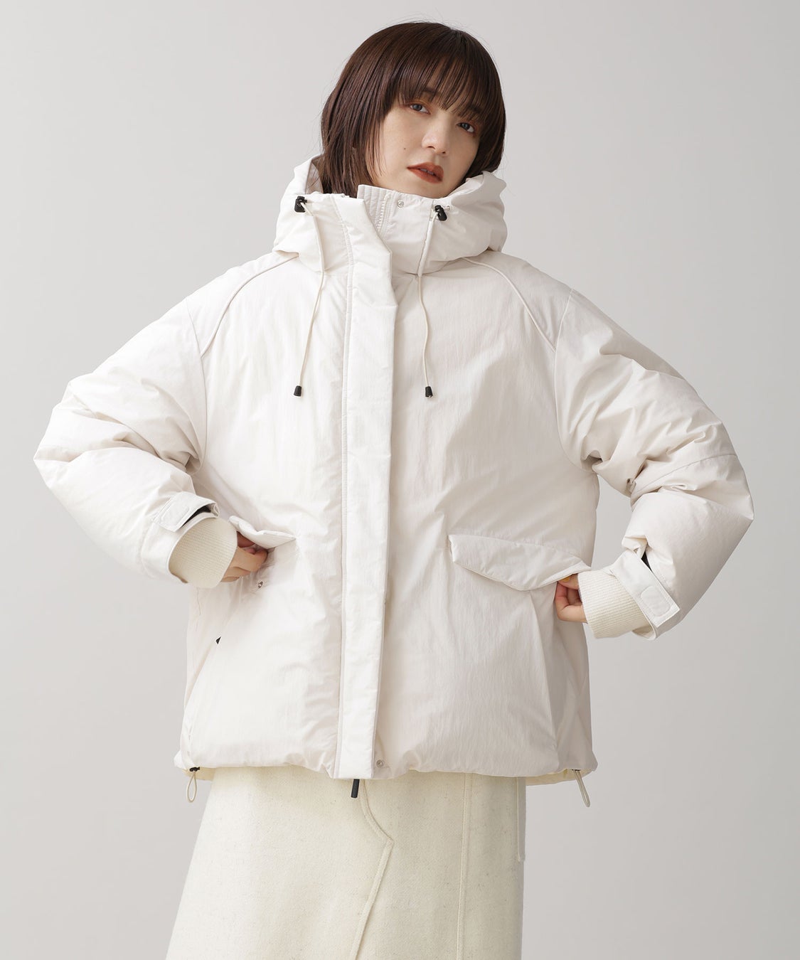 人気のショートダウンが素材と型を微調整してアップデート。ドロストや高級感を醸す附属使い、部分的にパイピングコードを挟み込んだ仕様など、細部にまで拘り仕上げたアイテム。定番的なデザインだからこそ、よりすっきり女性らしく見えるよう、シルエットやバランスに拘っている。