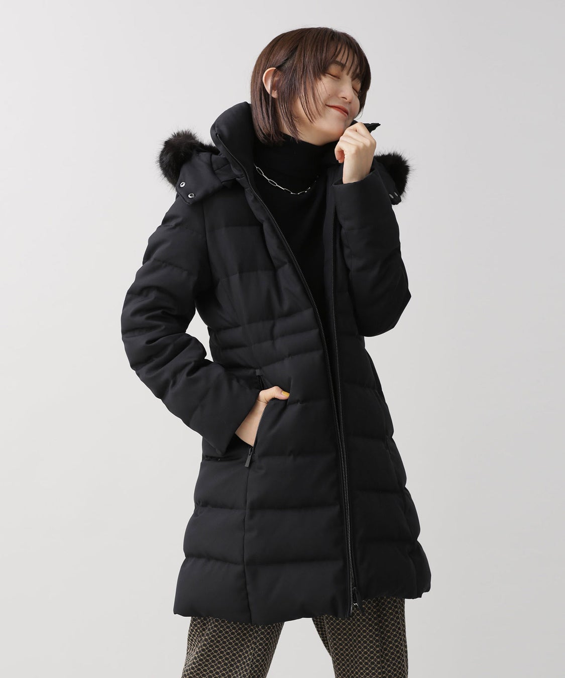 人気のロングダウンが素材と型を微調整してアップデート。フード周りのフェイクファーは、ソフトで柔らかな風合いと絶妙な色差を入れて限りなくリアル再現。定番的なデザインだからこそ、よりすっきり女性らしく見えるよう、シルエットやバランスにこだわった逸品。今季は新色として、待望のブラックが登場。