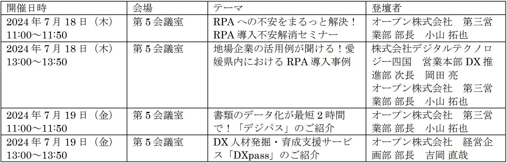 オープンが「えひめICTトレンドセミナー2024」に出展 業務効率化、社内DXに役立つセミナーを計4回開催