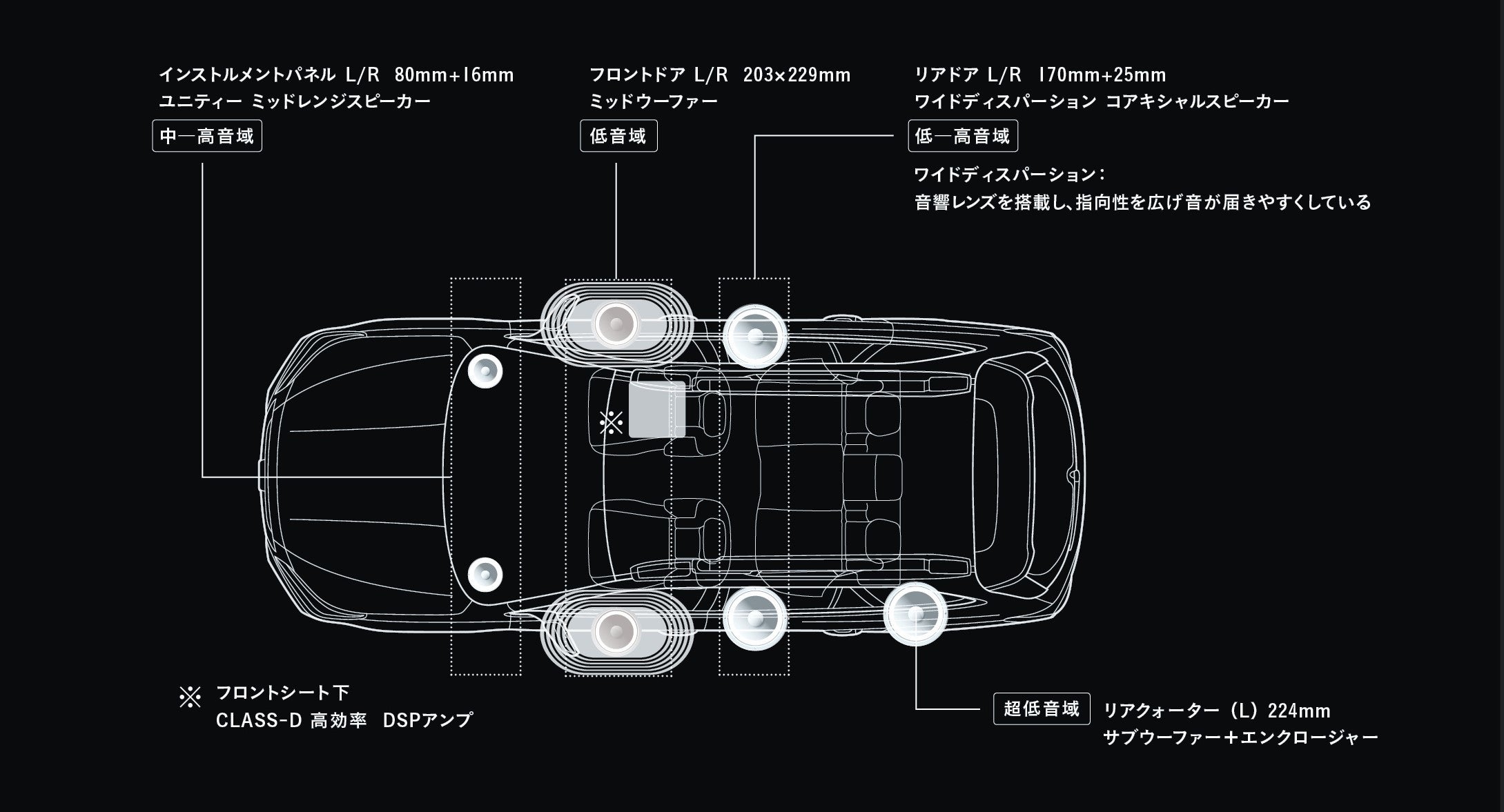 臨場感のあるプレミアムなステレオサウンドが上質な車内空間を演出