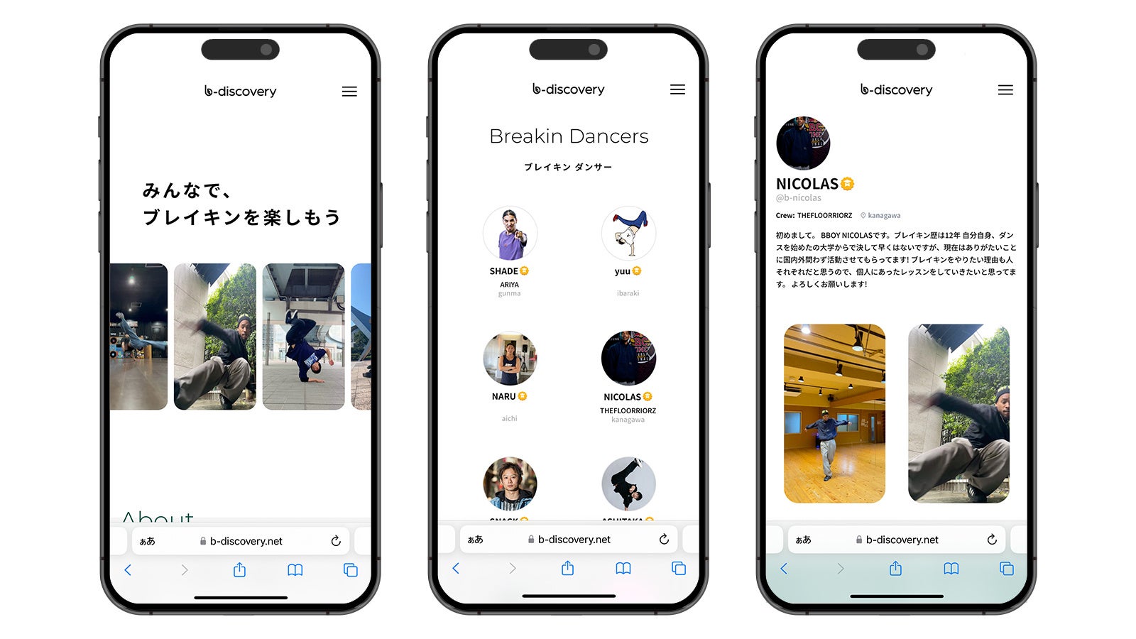 b-discoveryであれば、遠方に住んでいても「この人のレッスンを受けたい」と思う方や、ブレイクダンスに興味を持っていてゼロから学びたい方にもブレイクダンスの良さを伝えられる・感じてもらえるサービスであると信じています。