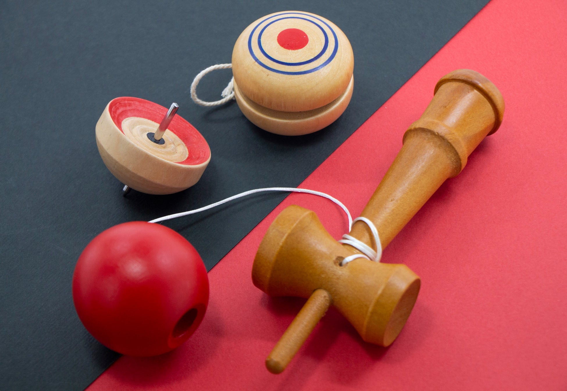 けん玉やコマなど懐かしの遊び道具を使ったパフォーマンスショー。