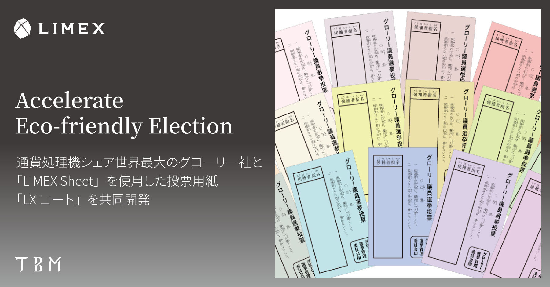 TBM、通貨処理機シェア世界最大のグローリー社と「LIMEX Sheet」を使用した投票用紙「LXコート」を共同開発