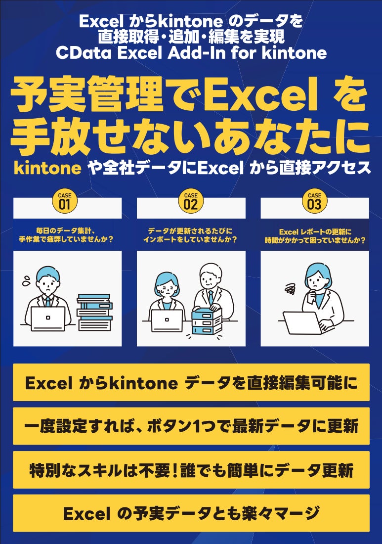 参考記事:Excel Add-In for kintone:( https://jp.cdata.com/drivers/kintone/excel/ )